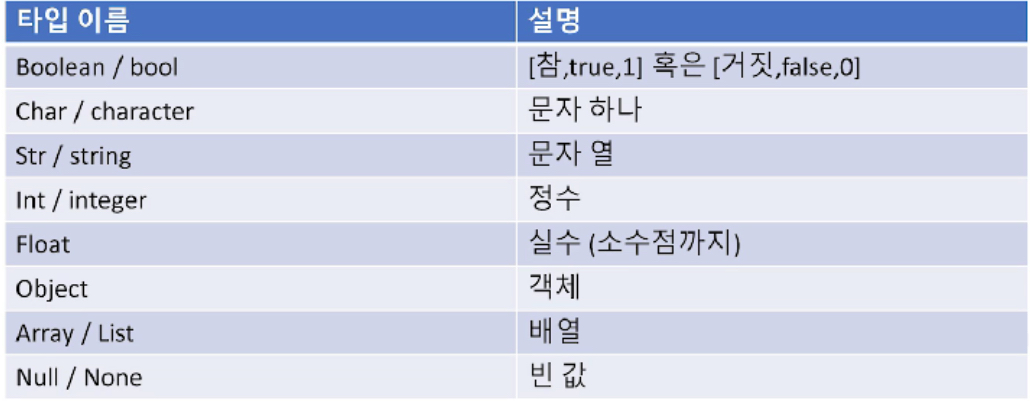 2. 정수, 실수, 문자, 배열, 빈 값 등을 저장