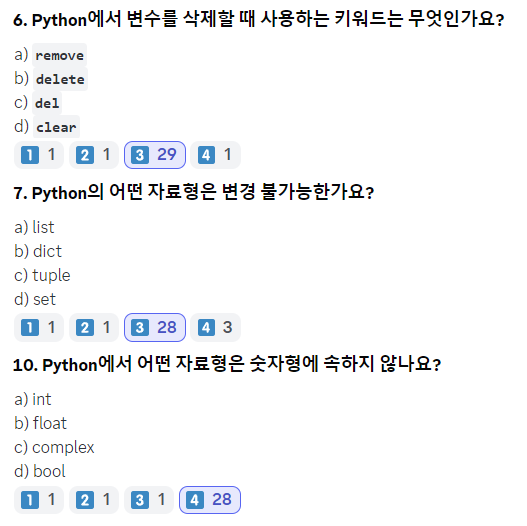 = 리스트 자료형(list / 변경 가능), 튜플 자료형(tuple / 변경 불가능), 사전 자료형 or 딕셔너리 자료형(dict / key와 value의 key의 중복을 허용하지 않음), 집합 자료형 or 셋 자료형(set / 값에 중복을 허용하지 않음)