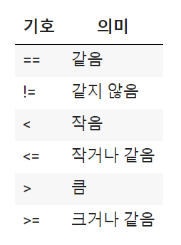 두 값을 비교하여 그 결과가 참인지 거짓인지 판단