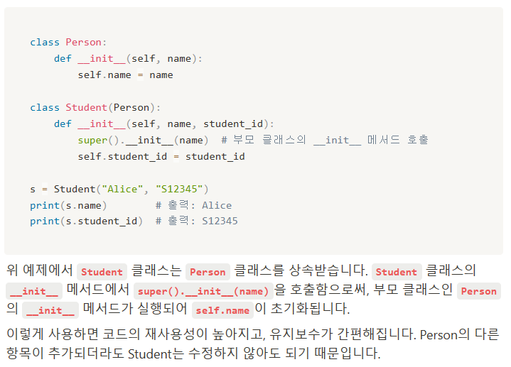 super().sound()처럼 super() 함수로 오버라이드된 메서드 내에서 부모 클래스의 메서드에 접근
