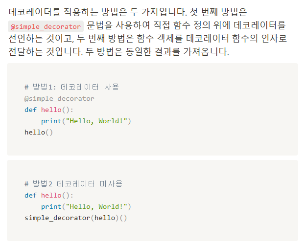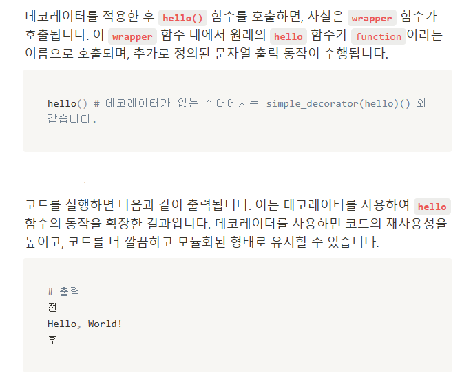 필요하에 사용하게 될 경우 데코레이터에 대해 더 자세한 코드와 풀이로 정리하겠습니다.