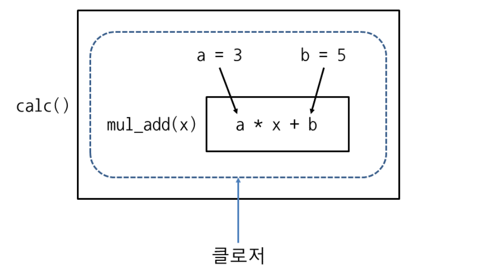 = 사용할 때 참조하는 변수가 실제로 바깥 함수에 존재하는지 반드시 확인해야 함 (그렇지 않으면 SyntaxError가 발생)