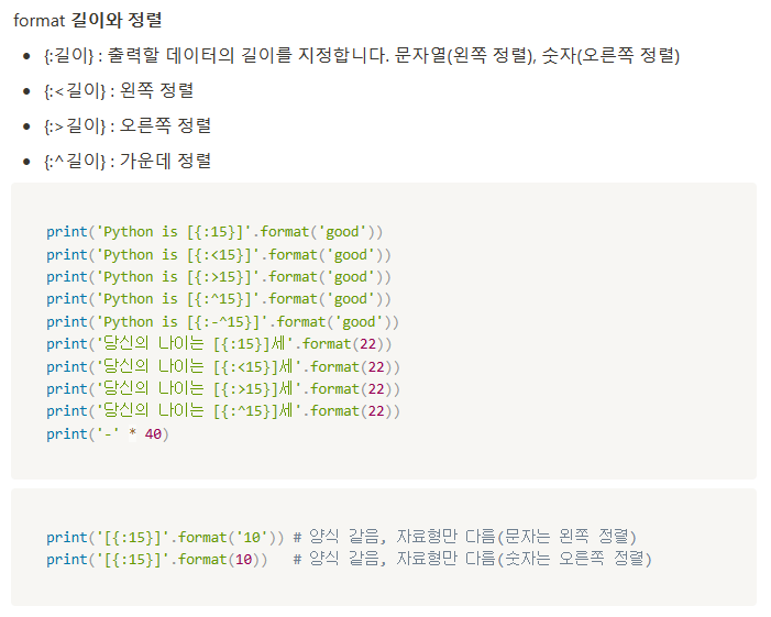 = {} 안에서 :를 사용하여 포맷팅 지정 (소수점 아래 자릿수 지정이나 정렬 방법 지정 등 사용)