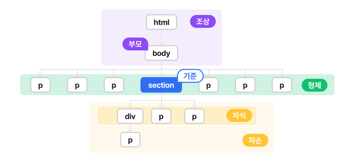 7-1. 자손(하위) 선택자 : 자식과 자손 모두 선택 가능, 공백 (띄어쓰기)를 통해 구분함, ( ) 사용