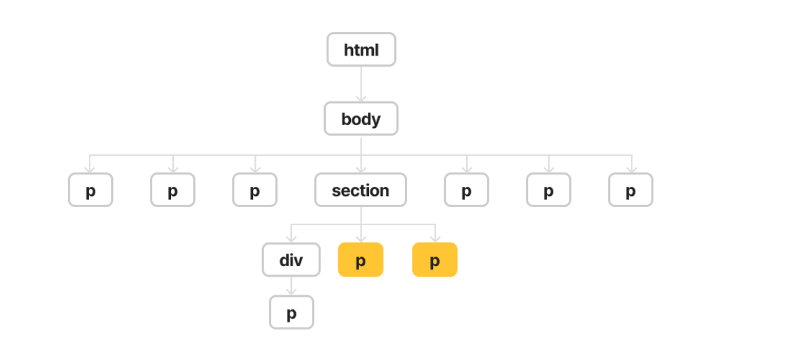 앞에 본 div의 color 속성은 자식인 h1, h2, p에게 상속됨