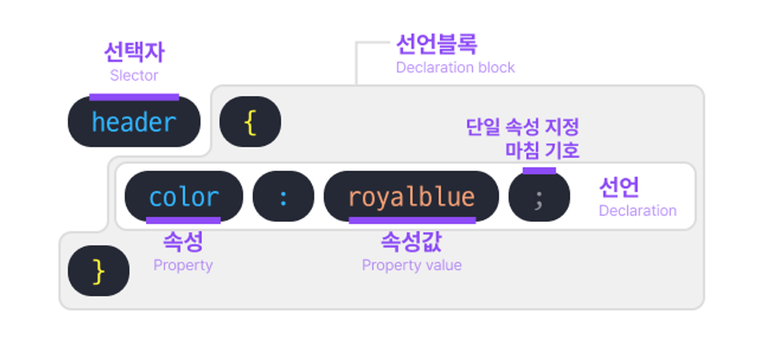 세미콜론(;) 해당 속성 선언(명령)을 끝