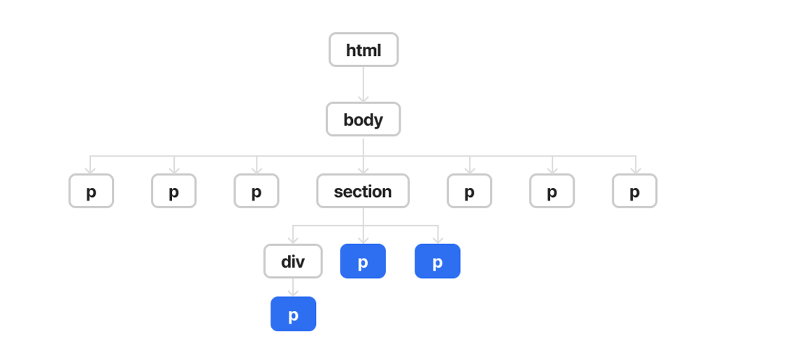 앞에 본 div의 color 속성은 자식인 h1, h2, p에게 상속됨