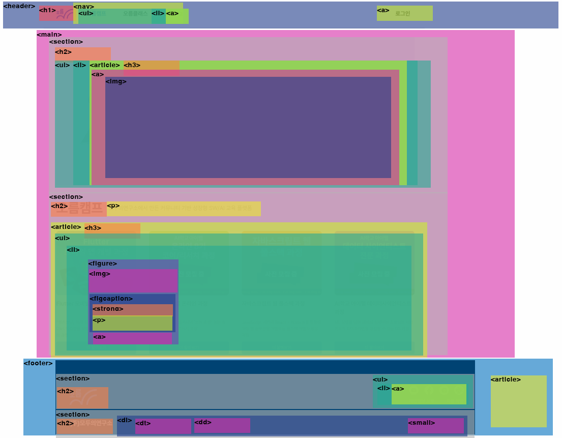 일단 어제 주셨던 과제는 오름캠프 홈페이지를 HTML 속성을 표시하기였습니다.