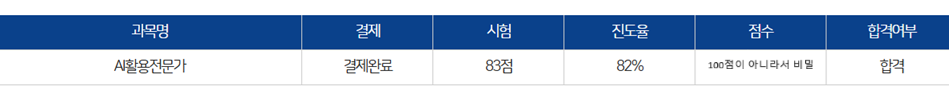 약 일주일간 강의를 수강하고, 조금 전에 AI활용전문가 자격증을 합격했습니다.