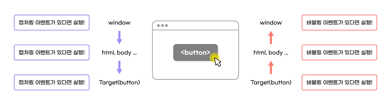 안녕하세요, 오랜만에 글을 쓰는 것 같네요. 저번에 말씀드린 DOM의 이벤트의 흐름부터 정리하려 합니다. 사실 이전에 작성하던 글이 있었는데 중간에 날아가서 다시 정리하는 시간이에요.. 덕분에 복습도 되고 좋은 것 같습니다 ^-ㅜ.. 이벤트 흐름 브라우저 화면에서 이벤트 발생 시 브라우저는 가장 먼저 이벤트 대상을 찾음 대상을 찾아갈 때 상위의 window 객체부터 document, body 순으로 DOM 트리를 따라 내려감 = 캡처링 단계라고 부름 이벤트 대상을 찾아가는 과정에서 브라우저는 중간에 만나는 모든 캡처링 이벤트 리스너를 실행 이벤트 대상을 찾고 캡처링이 끝나면 이제 다시 DOM 트리를 따라 올라가며 만나는 모든 버블링 이벤트 리스너를 실행 = 버블링 단계라고 부름 이러한 과정에서 이벤트 리..